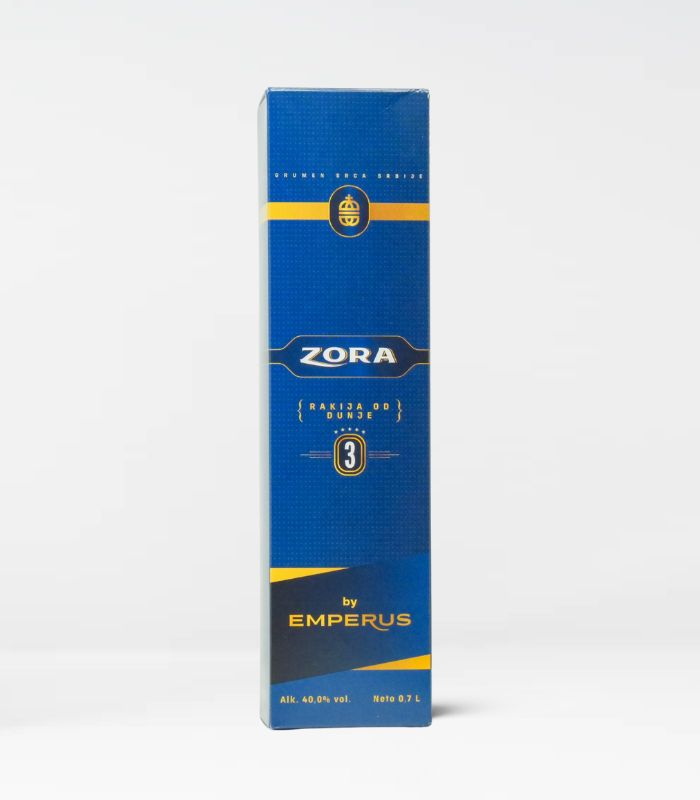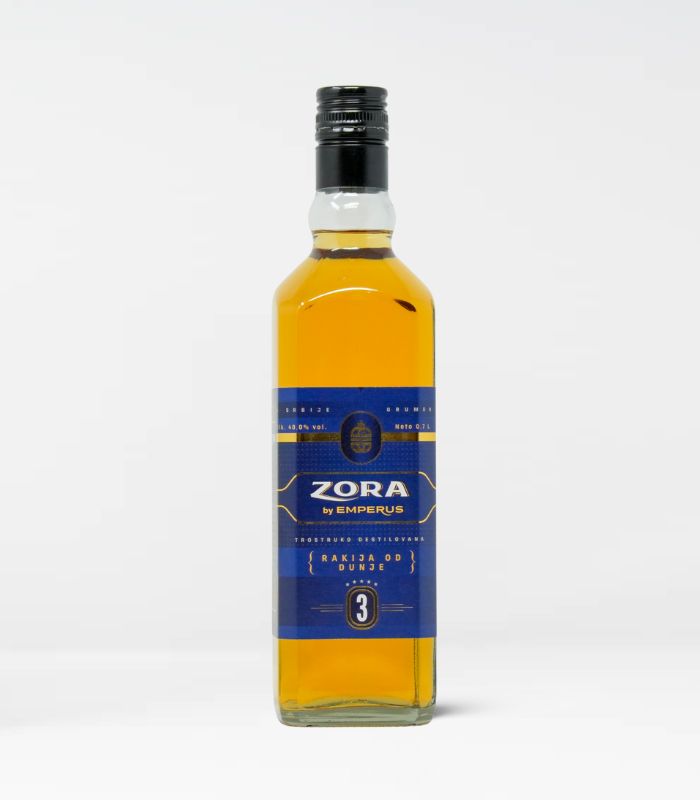 Emperus Zora Dunja 3 ist ein drei Jahre gereifter Quitten-Schnaps aus Serbien, hergestellt vom Produzenten Emperus. Der Rakija reift in sorgfältig ausgewählten Eichenfässern und entwickelt dabei eine leuchtend goldene Farbe sowie ein ausgewogenes Aromaprofil. In der Nase zeigen sich frische Quittennoten, ergänzt durch dezente Eichenakzente. Am Gaumen wirkt der Quittenrakija lebendig, harmonisch und angenehm zugänglich mit elegantem, erfrischendem Abgang. Emperus Zora Dunja 3 richtet sich an Genießer, die fruchtbetonte Rakija mit feiner Holzreife und klarer Struktur schätzen.