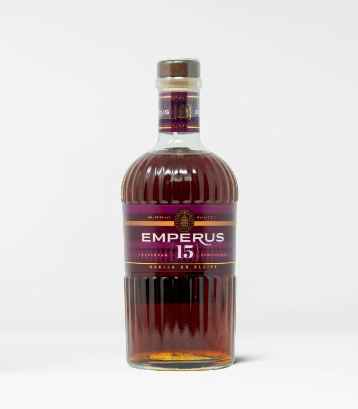 Der Emperus 15 ist eine hochwertige Pflaumenrakija aus Serbien, hergestellt aus einer Cuvée autochthoner Pflaumensorten. Fünf Jahre Reifung in serbischer Traubeneiche sorgen für Tiefe, Struktur und einen langen Abgang. Aromen von reifen Marillen, Walnüssen, Honig und feinen Schokoladenakzenten prägen das Genussprofil. Ein charakterstarker Premiumbrand für erfahrene Genießer und besondere Anlässe.