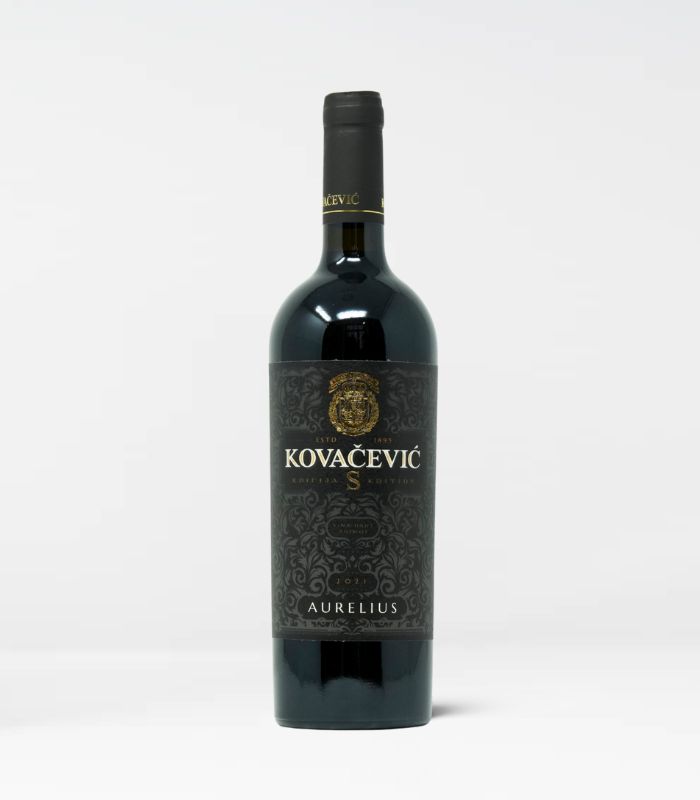 Kovačević Aurelius Edicija S ist ein dunkelroter Wein mit einer dicken Textur, gereift in Eichenfäßern.